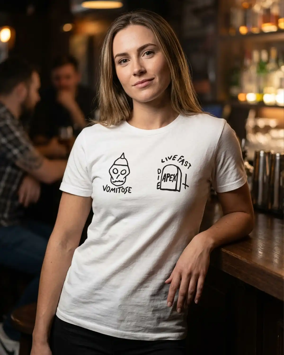 Apex Brewing Co presenterar stolt Allin T-shirt i vitt! Denna t-shirt är perfekt för både avkoppling hemma och en dag ute. Med sin mjuka och bekväma passform blir den snabbt en favorit i din garderob. Visa din passion för bra öl med stil! Vit t-shirt med tryck på bröstet.