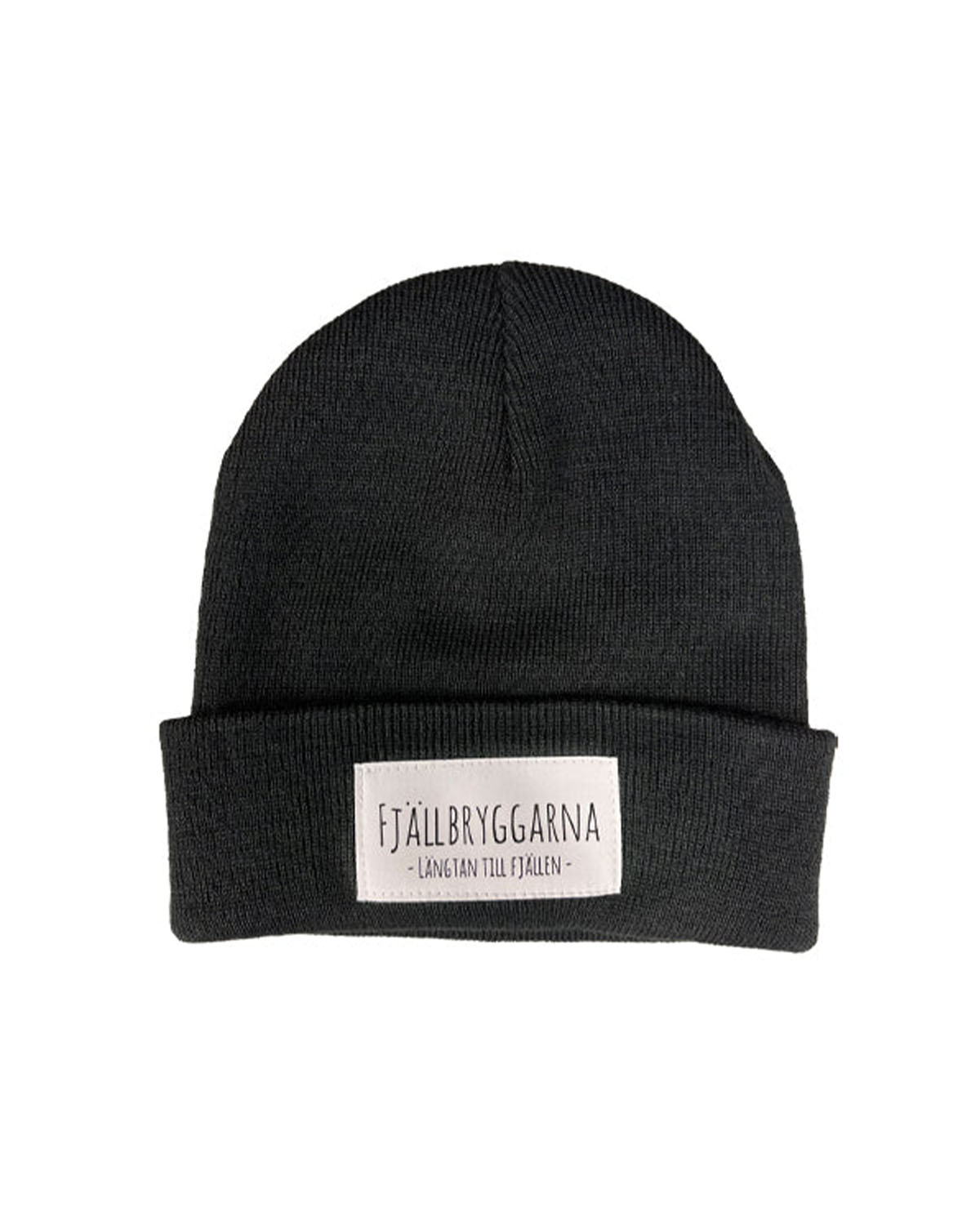 Svart snygg beanie från Fjällbryggarna Kommer med vävd etikett med logga på fronten.