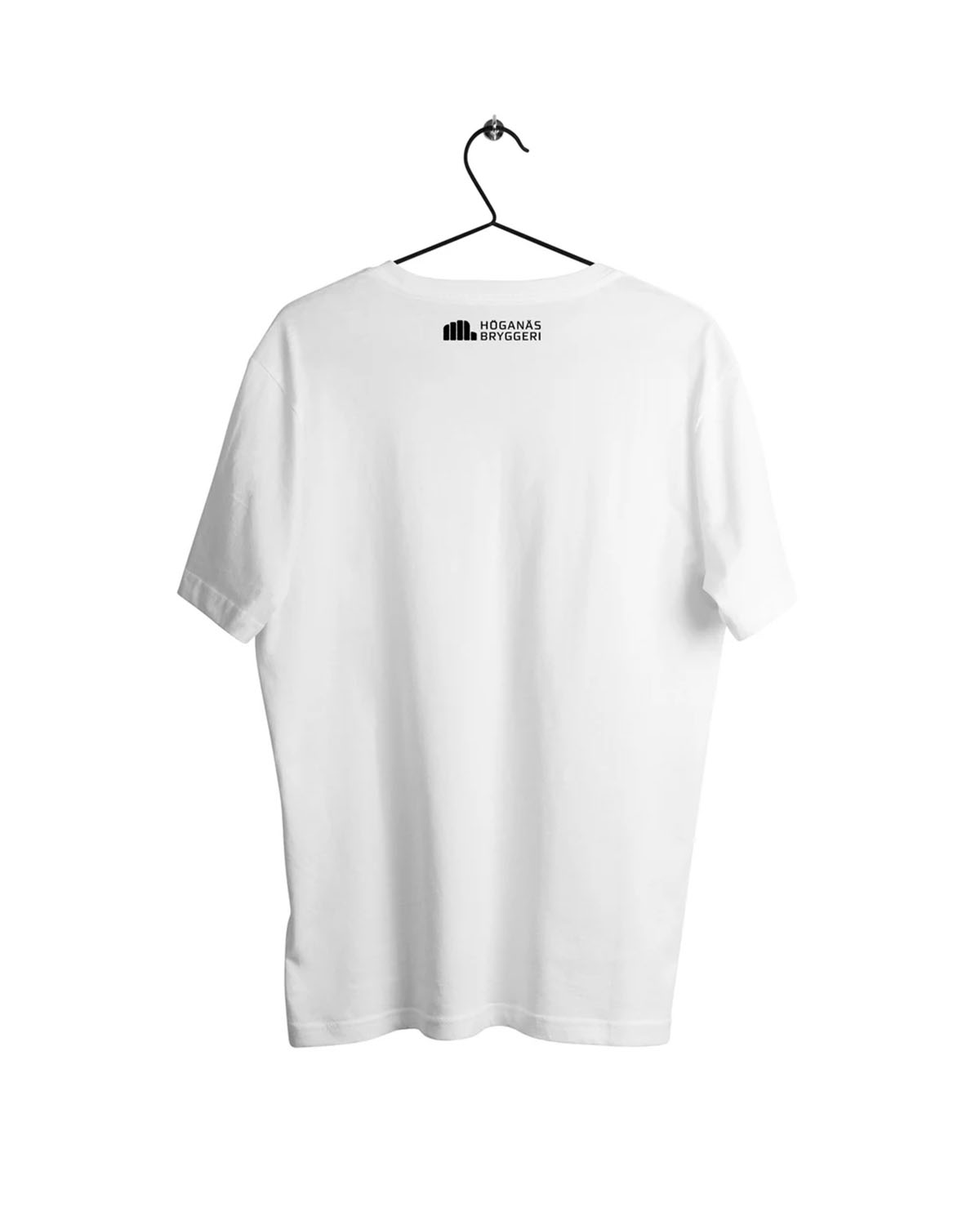 Tshirt från Höganäs Bryggeri. En vit tshirt med tryck på vänster bröst och avsändare bak utanpå nacke.