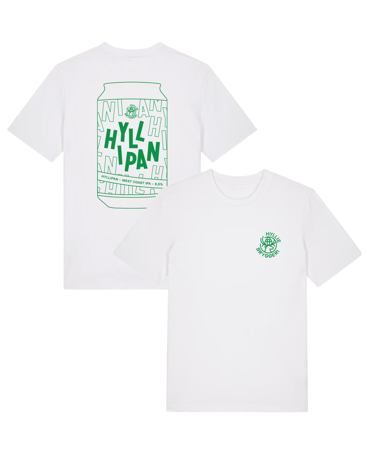 Vit t-shirt från Hyllie Bryggeri men hyllipan burken på ryggen samt logo på vänsterbröst.