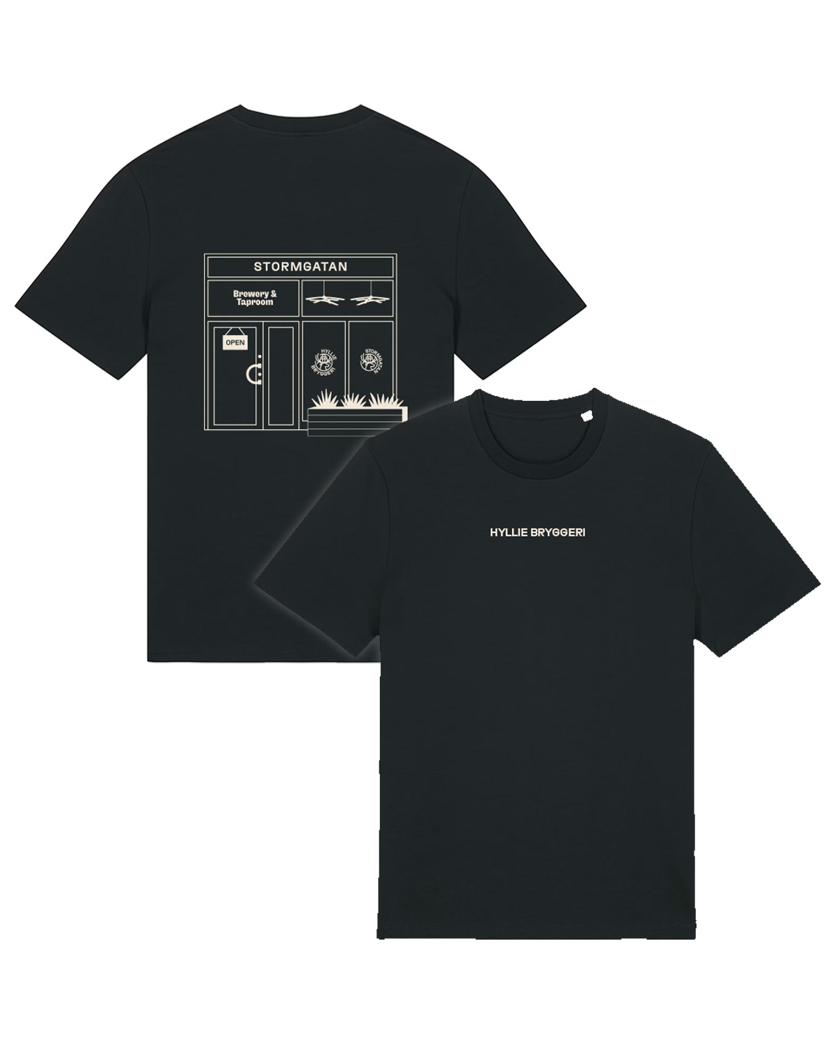 Svart t-shirt från Hyllie Bryggeri med Stormgatan på ryggen samt textlogo på bröstet.