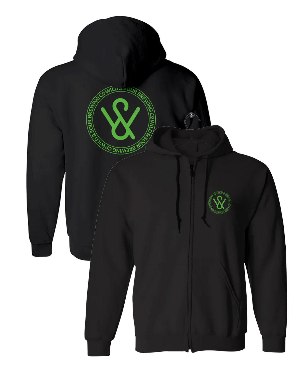 En skön och bekväm ziphoodie med Wild & Sour Logo på vänster bröst och stort på ryggen.